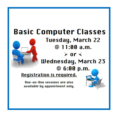 Now is the time to master the computer! The St. Marys Community Public Library will offer basic computer classes in March, and participants will be able to choose the skills they wish to explore. Use a library computer or bring your own laptop to the classes and learn the skills you need. Google, Microsoft, library research databases with Ohio Web Library or Linked In Learning are all possible topics for discovery. Two days/times are available: Tuesday, March 22, at 11:00 a.m. or Wednesday, March 23, at 6:00 p.m. Registration is requested as class size is limited.