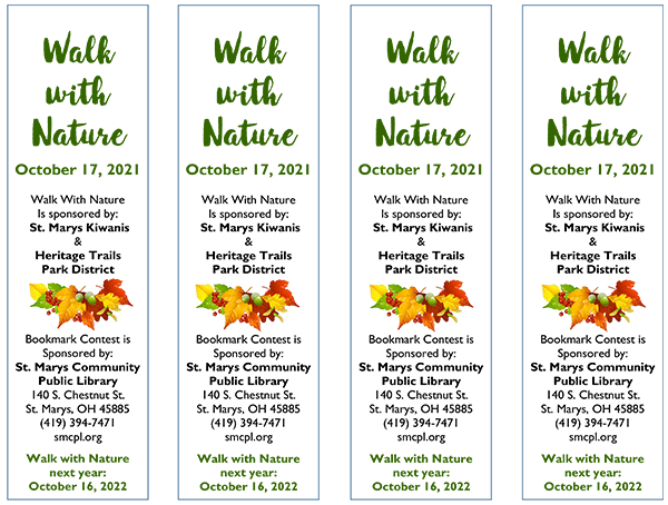 Walk with Nature Fall Festival Bookmark Contest Winners 2021